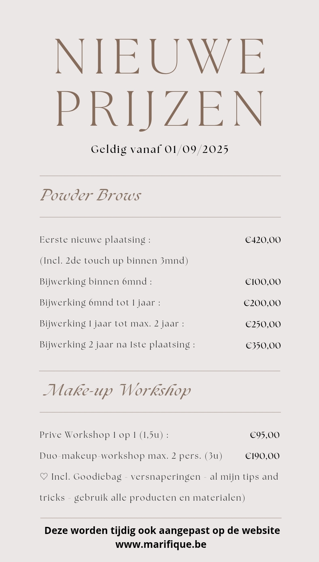 !!! NIEUWE PRIJZEN VANAF 01/09/25