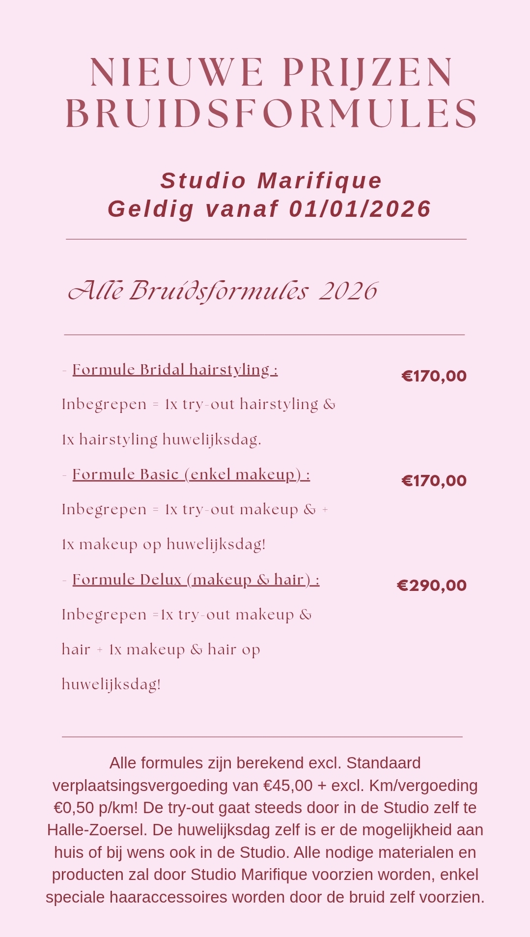 BRUIDFORMULES enkel geldig in 2025 ( nieuwe prijzen vanaf 01/01/2026) :